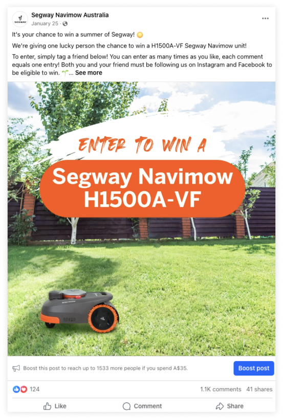 From this, TwentyTwo built creatives for the campaign aligning to the audience’s values. As two of the three audiences have strong family values, the campaign messaging became “Summer of Segway”, allowing people to win a Segway unit to give them more time to spend with their family rather than mowing.